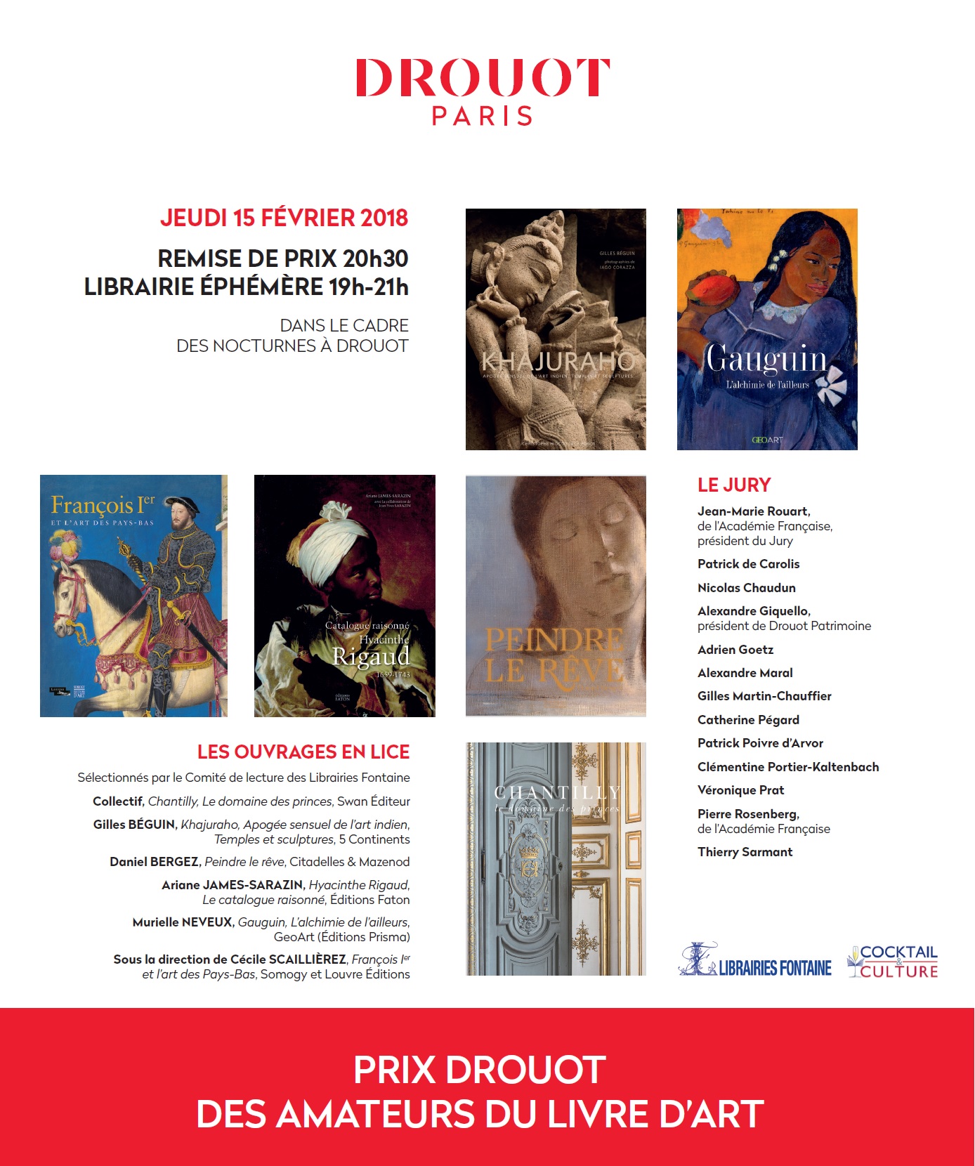 Le Prix Drouot des Amateurs du Livre d’Art 2015 sera remis le 11 février 2016 à 20h30 à l’Hôtel Drouot, 9 rue Drouot, Paris 9ème. Une séance de dédicaces aura lieu dans le cadre d’une Librairie Ephémère de 19h à 21h réunissant de nombreux auteurs d’ouvrages ayant pour thème l’art.