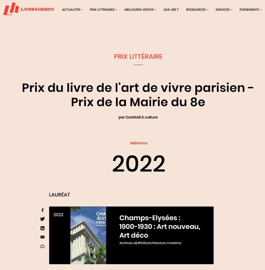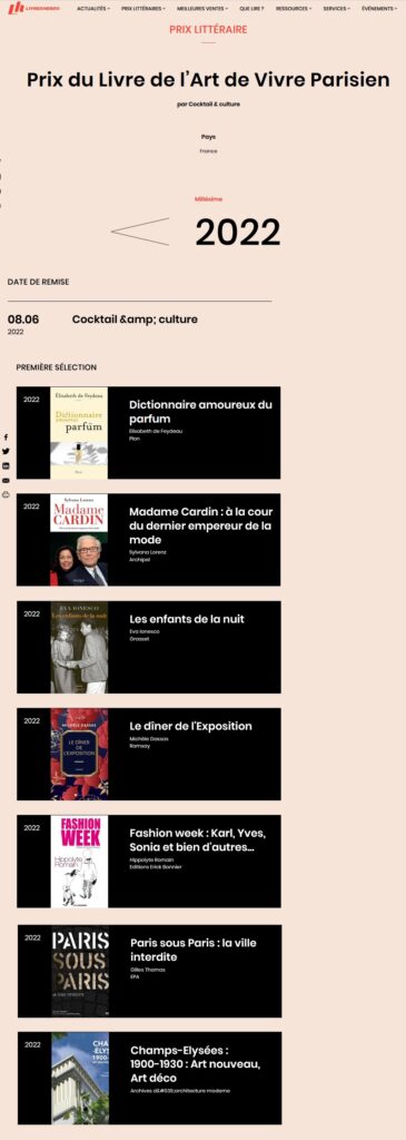 Prix du Livre de l’Art de Vivre Parisien 8 juin 2022