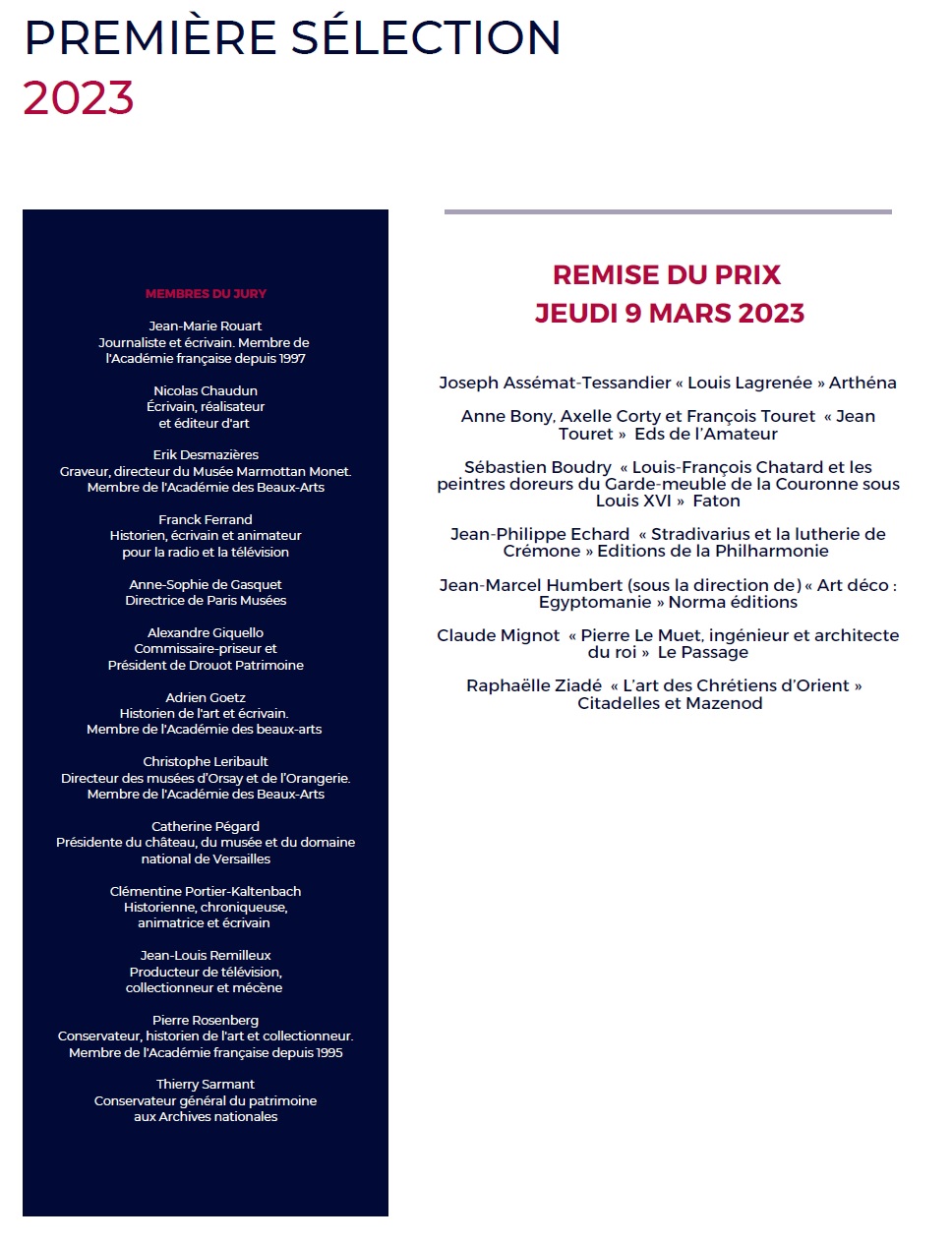 Prix Drouot des Amateurs du Livre d’Art 2023: Claude MIGNOT « Pierre le Muet, Ingénieur et architecte du roi 1591-1669 » Editions Le Passage Prix Gazette Drouot 2023 : Raphaëlle ZIADE « L’art des Chrétiens d’Orient, de l’Euphrate au Nil » Editions Citadelles & Mazenod
