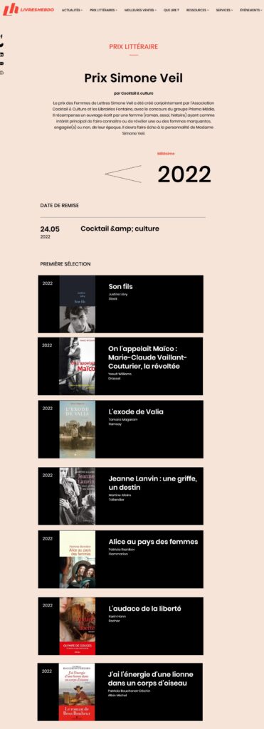 Medias 2022 Prix du Livre de l’Art de Vivre Parisien 8 juin 2022 ParCocktail_et_Culture 8 juin 2022 Purepeople du 9 juin 2022